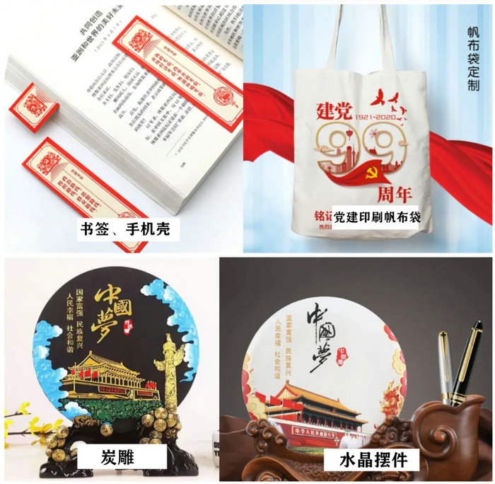 除了傳統的宣傳媒介,各種印有黨慶主題圖案的紀念品,也存在很大的需求。這對工藝品、精品、禮品的生產廠商來說,也是一個難得的業務的增長點。工業UV打印機在這塊自然也成為製作這些產品的利器。