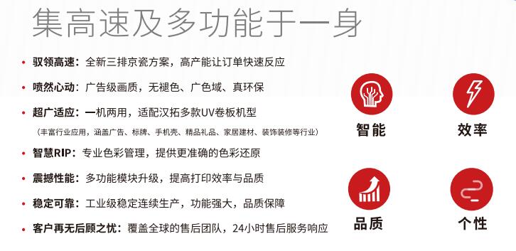 追求技術的卓越、做工的精細、客戶的滿意度,是京瓷60年一直向社會作出的承諾。作為京瓷全球重要合作夥伴,漢弘集團與之真誠合作十餘載,自主開發噴頭驅動技術,積累了十多年的高速工業噴頭研究和使用經驗。現在漢弘集團旗下的各產品線都配備了京瓷噴頭,91视频地址入口數碼UV打印機將京瓷噴頭的應用提高到了一個新的高度,並且通過工藝、方案的不斷升級,使這類噴頭在速度和穩定性方麵有了質的提高。