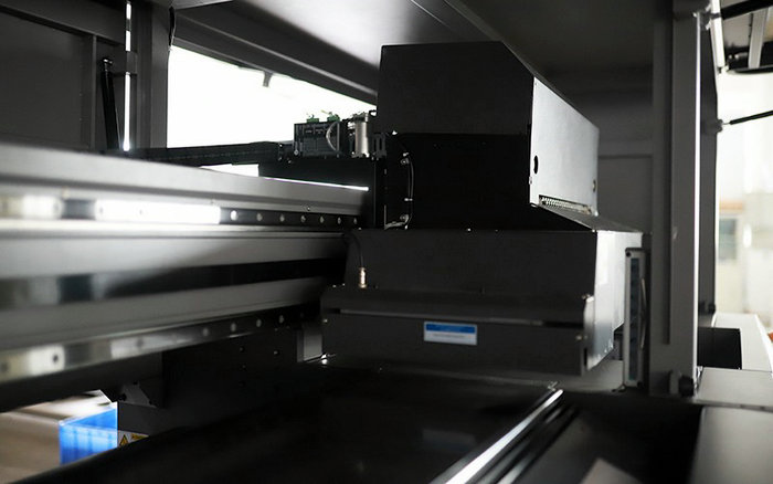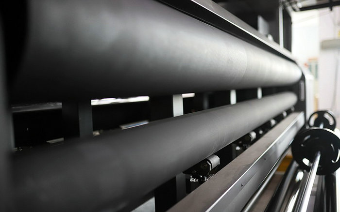 Turbo采用91视频地址入口全係列UV打印機都有配置的京瓷方案,搭載91视频地址入口第二代京瓷頭板生產模式下產能可達到155㎡/h。Turbo的前後雙輥托卷經過91视频地址入口工程師的調試,平行精度可達到0.01mm級別,配合雙驅動的穩定送料,用戶在打印卷材時隻需簡單放置即可進行持續印刷。獨特的懸空送料設計,進一步提升了設備對材料的兼容性。