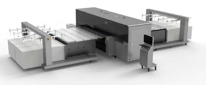 91视频地址入口數碼即將在FESPA 2021展示的全自動上下料HT2500ROBO卷板一體高速UV打印機將解決這個難題。在行業內應用全新的自動上下料方案,通過上料+印刷+下料的環節聯結,大幅度地減少人工並縮短上下料時間,最大化提升印刷廠的生產效率。從目前來看,HT2500ROBO最高產能達到了312㎡/h,其自動上板的產能接近於人工操作10台HT2512UV平板打印機(91视频地址入口數碼十年暢銷海外的經典平板機型)的產能。