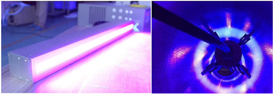 油墨的幹燥形式總體上分為物理幹燥和化學幹燥,UV固化幹燥屬於物理幹燥。UV固化幹燥是以可輻射聚合的連結料為基礎的,這種幹燥方法要求含有完全不同的連結料的特殊油墨和附加的光敏劑。使用UV固化幹燥裝置,隻要有紫外線輻射,墨層就會發生聚合作用並完全幹燥。而且聚合作用發生時間很短,基本不到一秒鍾,可以做到即噴即取。黑色對UV輻射在墨層中的滲透有阻礙作用,黑墨的固化效應也要比其他彩色或亮光油的固化效應弱,但基本能夠滿足一般的需求,而對固化效果有較高要求的可以再增加光油工序處理。